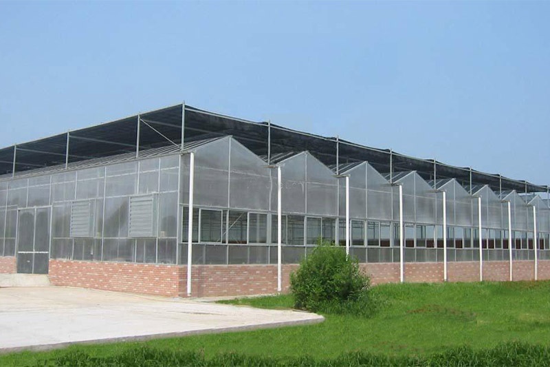 溫室主體骨架采用內(nèi)外熱浸鍍鋅鋼管及鋼板和溫室專用鋁合金型材,專用鋁箔封口,緊固件、連接件及抗老化橡膠密封條等優(yōu)質(zhì)材料,使用壽命大于10年。溫室頂部及四周側(cè)墻采用4mm國產(chǎn)優(yōu)質(zhì)浮法玻璃,玻璃透光率為88%。溫室側(cè)面可設(shè)置推拉窗,頂部可設(shè)置雙向交錯開空窗,通風(fēng)率為27%,齒輪齒條副傳動??筛鶕?jù)客戶要求加裝電動拉幕系統(tǒng)、內(nèi)遮陽系統(tǒng)、濕簾-風(fēng)機降溫系統(tǒng)、加溫系統(tǒng)、噴灌系統(tǒng)、配電系統(tǒng)、通風(fēng)系統(tǒng)、智能控制等??傊麄€產(chǎn)品的設(shè)計是利用現(xiàn)代化的手段實現(xiàn)對溫室內(nèi)部溫度、相對濕度、自動控制,為作物創(chuàng)造適宜的生長環(huán)境;同事降低運行成本,提高管理效率實現(xiàn)高品質(zhì)、高效益。主要用于科研實驗、名優(yōu)花卉種植、觀光旅游、生態(tài)休閑、農(nóng)業(yè)育苗等。